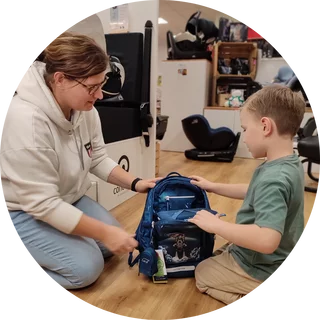 Jetzt wird probiert! Dein Kind testet verschiedene Modelle von Top-Marken wie Ergobag, Step by Step oder Satch – natürlich mit Test-Gewichten, um den realen Schulalltag zu simulieren.
